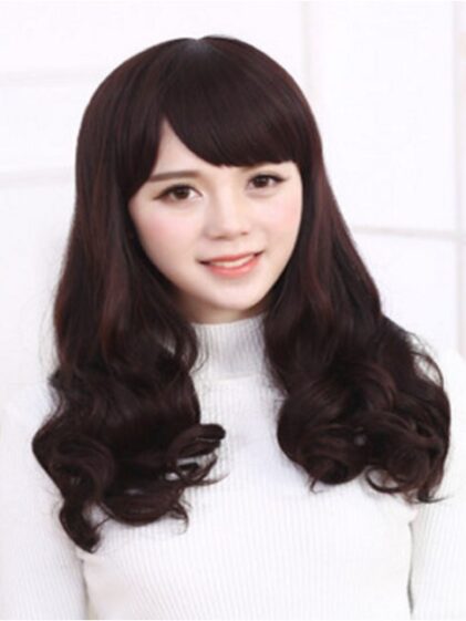 Very natural realistic looking dark Brown color Hair Wig-non lace front Wig-Wavy-Synthetic fiber Celebrity Wigs-Human Hair LOOK-WS-232