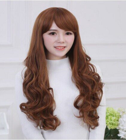 Very natural and realistic looking Brown color Hair Wig-non lace front Wig-Curly-Synthetic fiber Celebrity Wigs-Human Hair LOOK- WS-056