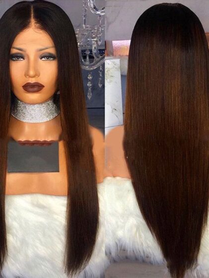 Very natural and realistic looking Brown color Hair Wig-non lace front Wig-Straight-Synthetic fiber Celebrity Wigs-Human Hair LOOK- WS-064
