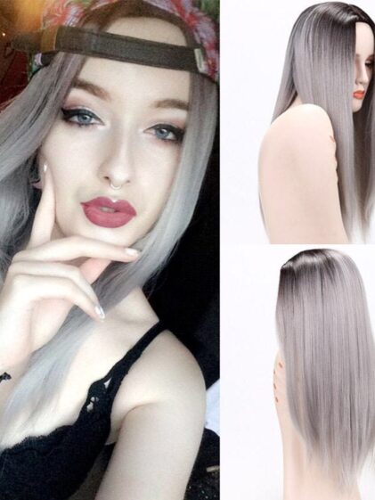 Very natural and realistic looking Grey/Ash color Hair Wig-non lace front Wig-Wavy-Synthetic fiber Celebrity Wigs-Human Hair LOOK- WS-096