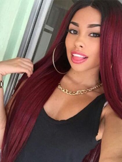 Very natural and realistic looking Dark Red color Hair Wig-non lace front Wig-Straight-Synthetic fiber Celebrity Wigs-Human Hair LOOK-WS-103