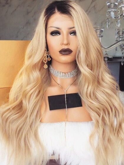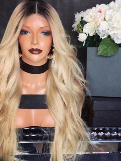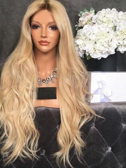 Very natural realistic looking light Blonde color Hair Wig-non lace front Wig-Wavy-Synthetic fiber Celebrity Wigs-Human Hair LOOK- WS-140