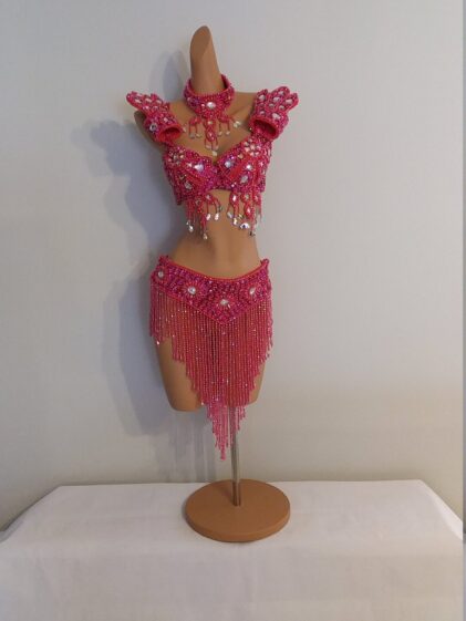 S/M Hot PINK Beads Skirt+Top-Samba Costumes Carnival Show Girl-Vegas-Cabaret-Burning Man-Pride Parade-Mardi Gras-Brazil-Carneval-BM-Bead1-Hp