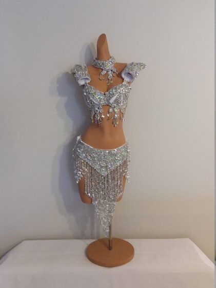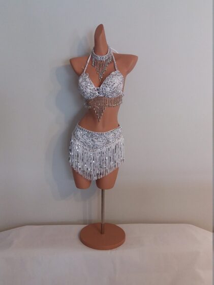 SILVER Beads Skirt+Top-Samba Costumes Carnival Show Girl Las Vegas-Cabaret-Burning Man-Pride Parade School Ball Brazil-Carneval