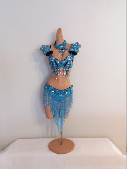 TURQUOISE Beads Skirt+Top-Samba Costumes Carnival Show Girl-Vegas-Cabaret-Burning Man-Pride Parade-Mardi Gras-Brazil-Carneval-BM-Bead1-Tu