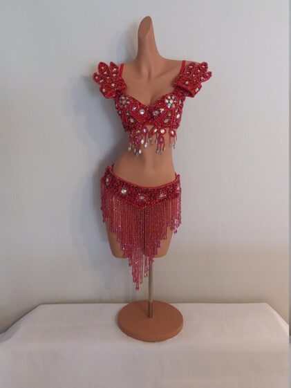 RED Beads Skirt+Top-Samba Costumes Carnival Show Girl Las Vegas Notting Hill Pride Gay Parade festival School Ball Brazil- WS-Set1-RE