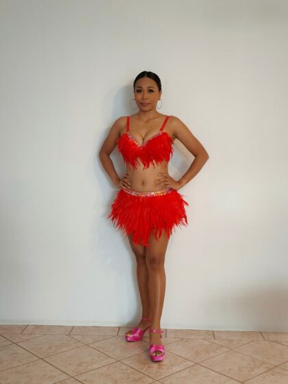 RED color BIKINI-32 inch skirt/80cm Bra-Feather Skirt-Samba Costumes Carnival Show Girl Las Vegas-Cabaret-Burning Man-Pride-Carneval-Kim