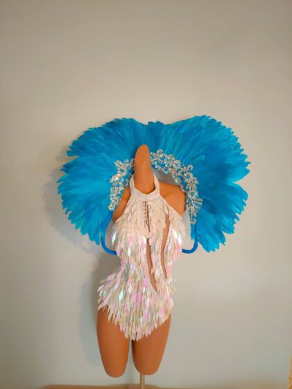 TURQUOISE color Feather Wings/Backpack-Samba Costumes Carnival-Mardi Gras-Show Girl Las Vegas Notting Hill Pride Parade Brazilian Carnaval-