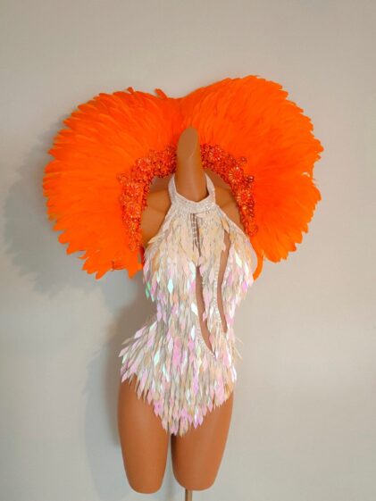 ORANGE Feather Wings/Backpack-Samba Costumes Carnival-Mardi Gras-Show Girl Las Vegas Notting Hill Pride Parade Brazilian Carnaval-BM-Mdf