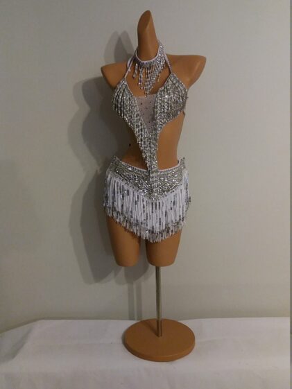 WHITE/SILVER Sequin Beads Dress- Samba Costumes Carnival Show Girl Las Vegas Notting Hill Pride Gay Parade festival School Brazil-KS-D1-Ws