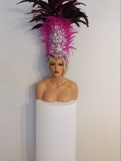 Hot PINK Mirror Feather Headpiece-Headdress Samba Costumes Carnival-Mardi Gras-Show Girl- Las Vegas-Cabaret-Brazilian Carnaval-KS-SMH4-Hp