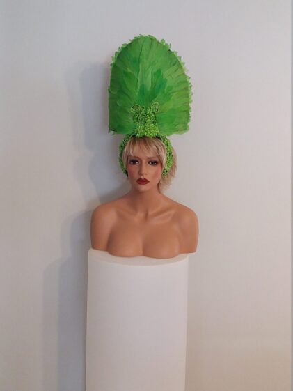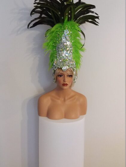 Lime GREEN Mirror Feather Headpiece-Headdress Samba Costumes Carnival-Mardi Gras-Show Girl- Las Vegas-Cabaret-Brazilian Carnaval-KS-SMH4-Bp