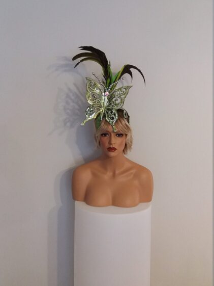 Lime GREEN Mirror/Feather Butterfly Headpiece-Samba Costumes Carnival-Mardi Gras-Show Girl-Rio- Las Vegas Rave Gay Brazilian Carnaval-KS-HD2
