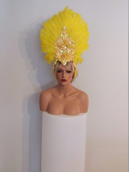 YELLOW Feather Headpiece-Headdress-Samba Costumes Carnival-Mardi Gras-Show Girl Las Vegas Rave Burning Man Gay Brazilian Carnaval-BM-HD6-Y