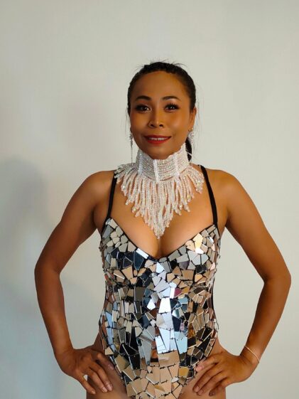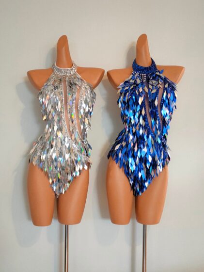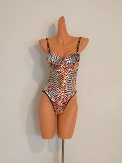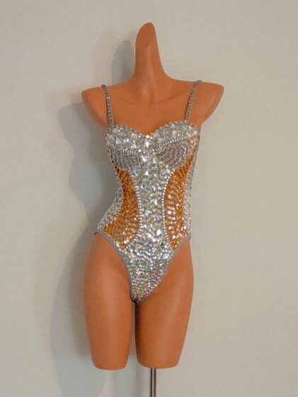 SILVER Crystal Sequin Beads Leotard-Samba Costumes Carnival Show Girl Las Vegas Notting Hill Pride Gay Parade festival School Brazil-Sil