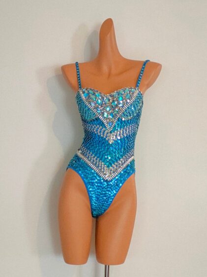 TURQUOISE Crystal Sequin Beads Leotard-Samba Costumes Carnival Show Girl Las Vegas Notting Hill Pride Gay Parade festival School Brazil-