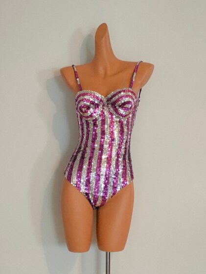 PURPLE Crystal Sequin Beads Leotard-Samba Costumes Carnival Show Girl Las Vegas Notting Hill Pride Gay Parade festival School Brazil-Purple