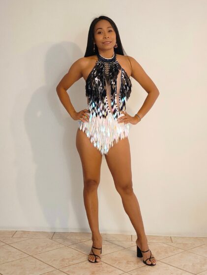 WHITE +BLACK Crystal Sequin Beads Bodysuit/Leotard-Samba Costumes Carnival Show Girl Las Vegas Notting Hill Pride Gay Parade festival School