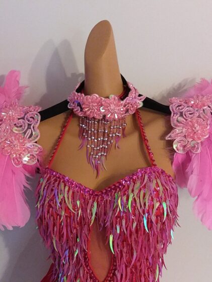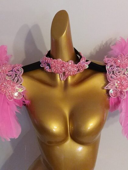 Large BABY PINK real Duck Feather Shoulder Pads, connected through beads collar ! ( Please see all pictures ! )