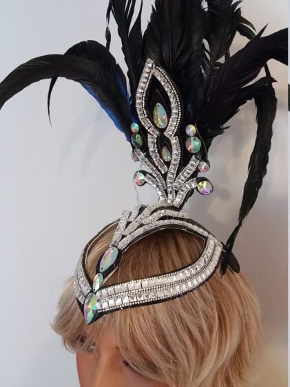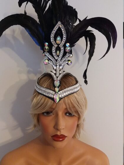 Gorgeous Crystal and Feather Headdress/Headpiece with nice decor !