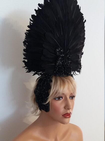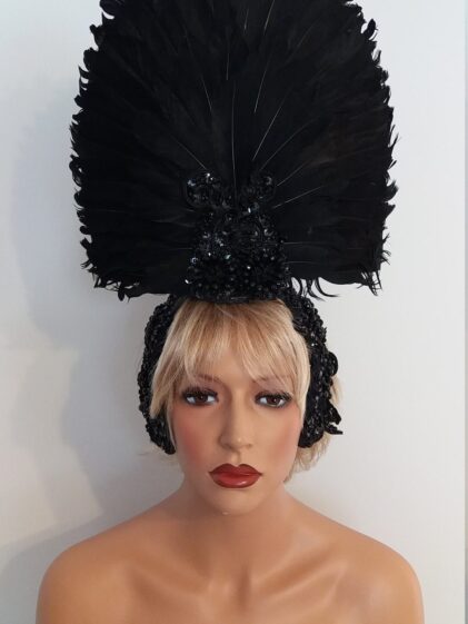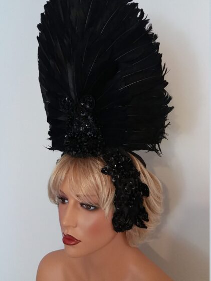 BLACK Duck Feather Headpiece, with matching Sequins ! ( Please see all pictures ! )