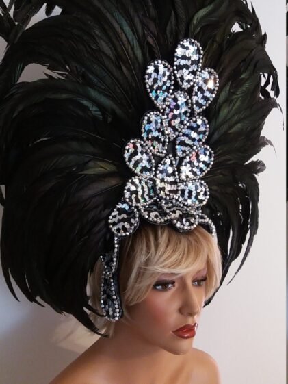 BLACK Rooster Feather with matching sequins Headpiece ! ( Please see all pictures ! )