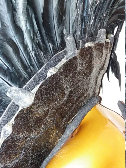 Giant BLACK real Rooster Feather Wings with empty slots for additional feathers, if desired ! ( Please see all pictures ! )