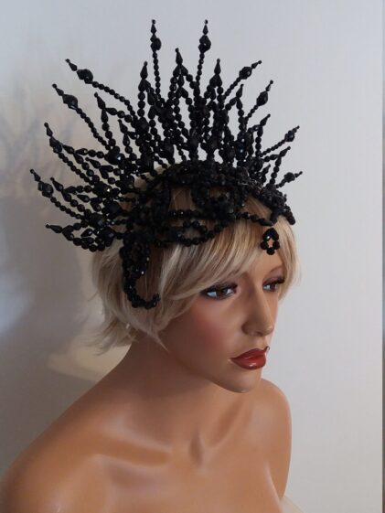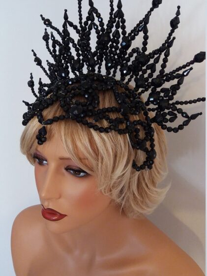 BLACK Beads Crown. Headdress "LIBERTY" with bead chains ! ( Please see last picture ! )