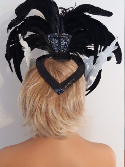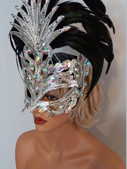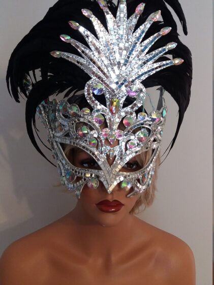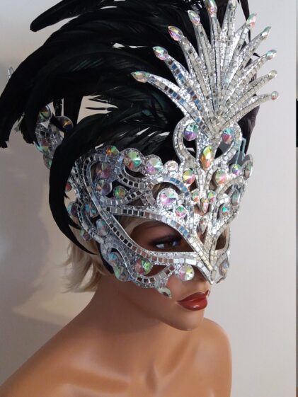SILVER base with Mirror pieces "MASK" Headpiece, comes with BLACK Feathers ! ( Please see all pictures ! )