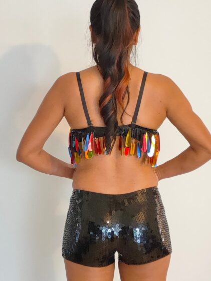Sequins / Beaded BLACK color BRA with Rainbow color beads ( Please see pictures ! )