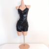 BLACK/Silver Sequins. Beads and crystal Stones Leotard/Bodysuit ! ( Please see all pictures ! )