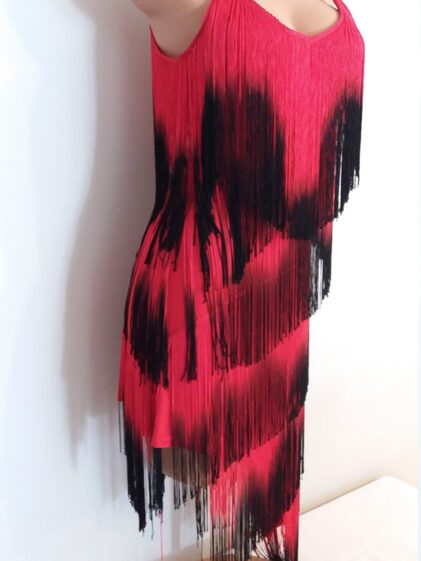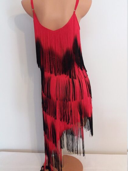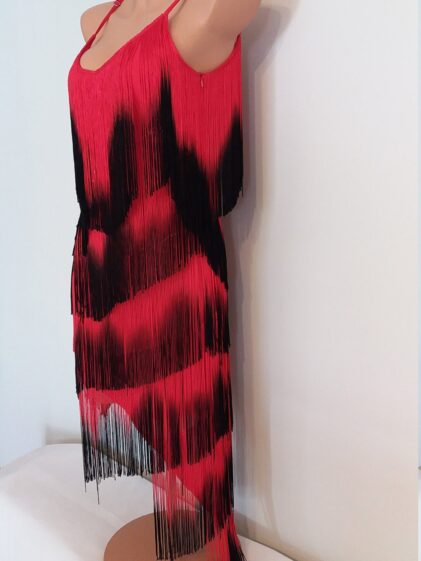RED / BLACK Fringe long Dress, closed back ! ( Please see all pictures ! )