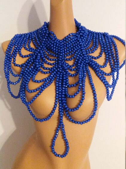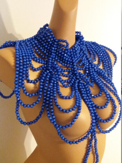 | BLUE BEADS OUTFIT | Beaded SKIRT/BELT, Beaded COLLAR/TOP |