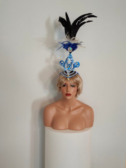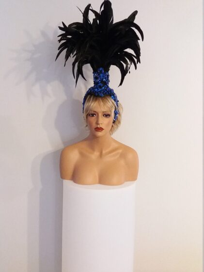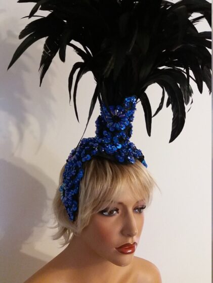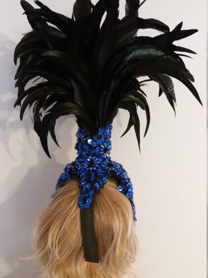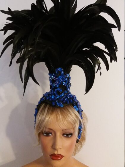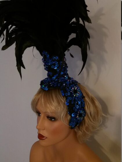 BLACK Rooster Feather with BLUE sequins Headpiece ! ( Please see all pictures ! )