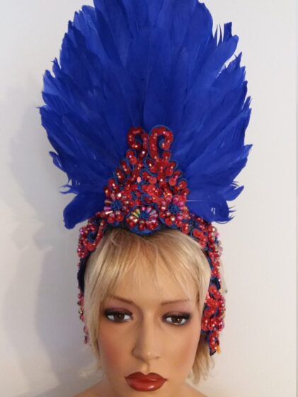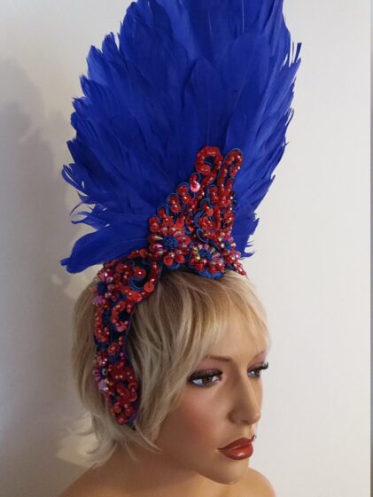 BLUE Duck Feather Headpiece, with Red Sequins ! ( Please see all pictures ! )