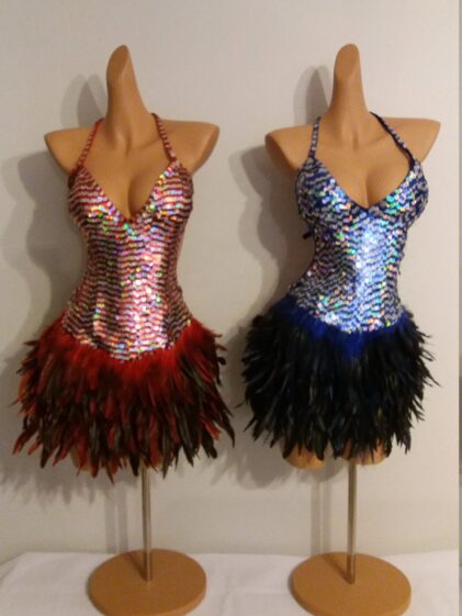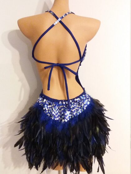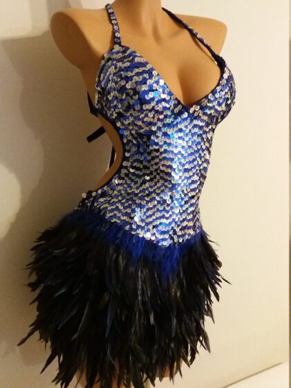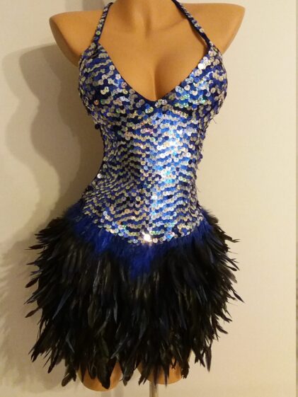 Lovely handmade Sequin Dress with real Rooster Feathers.