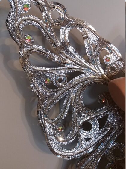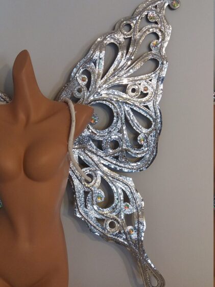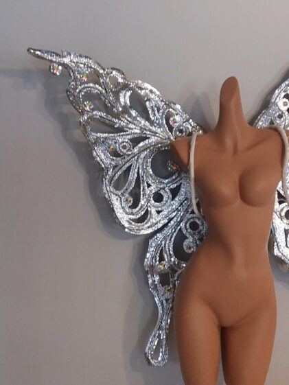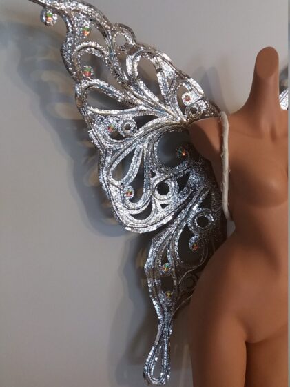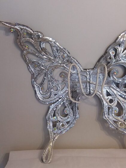 GIANT SILVER MIRROR WINGS / BACKPACK ( Model # 3 – "BUTTERFLY" ), with 100's of small mirror pieces ! ( 1 Piece Set )
