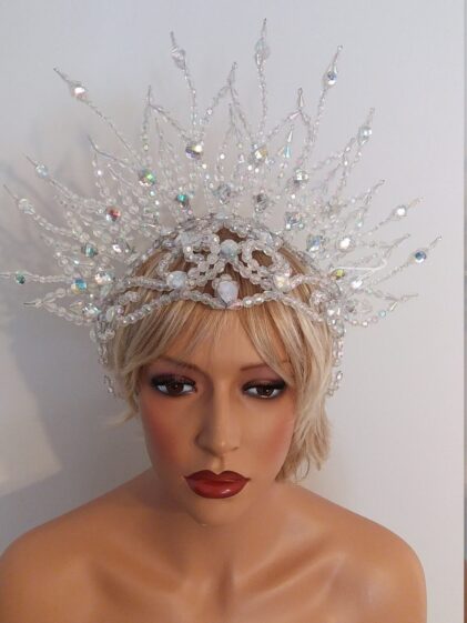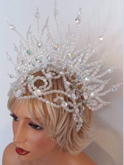 CLEAR color Beads Crown. Headdress "LIBERTY" with bead chains ! ( Please see last picture ! )