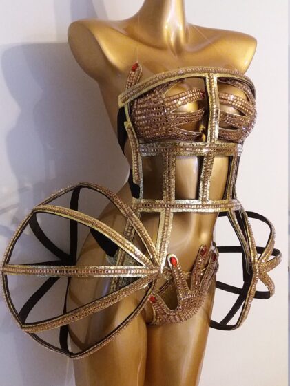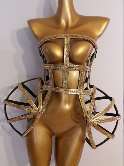 This luxury CAGE is the perfect addition to our crystal "Hands OFF" Bikinis or our Mirror clothes ( see all pictures )