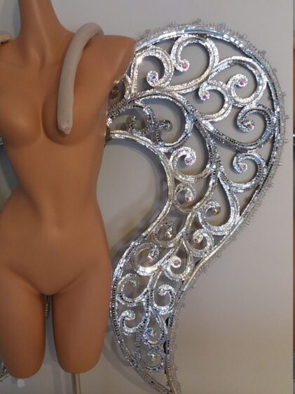 GIANT SILVER MIRROR WINGS / BACKPACK ( Model # 2 – "ANGEL" ), with 100's of small mirror pieces ! ( 1 Piece Set )