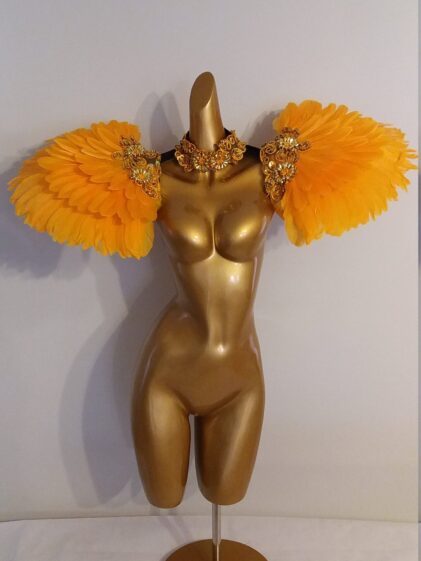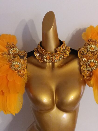 Large GOLD real Duck Feather Shoulder Pads, connected through beads collar ! ( Please see all pictures ! )
