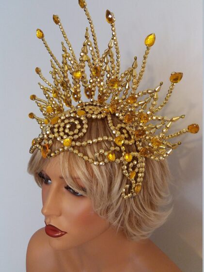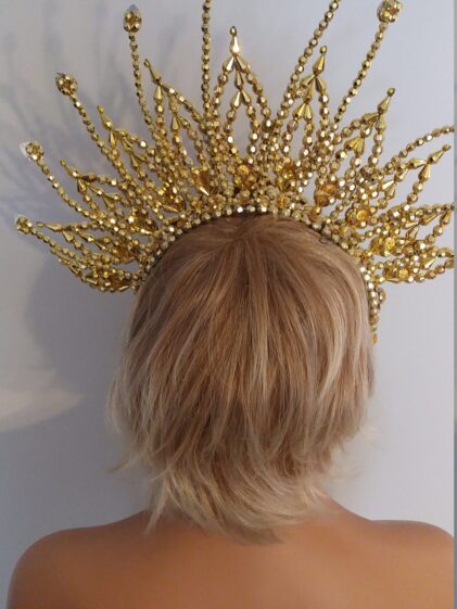 GOLD color Beads Crown. Headdress "LIBERTY" with bead chains ! ( Please see last picture ! )