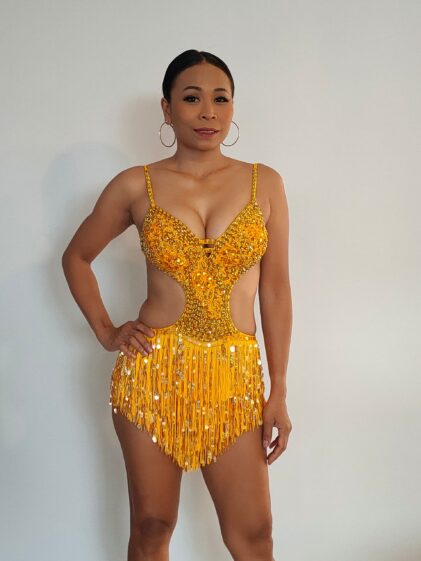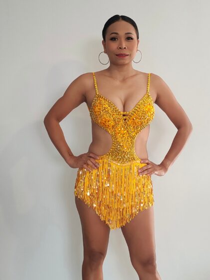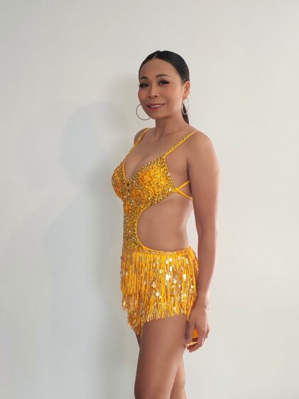GOLD Color Fringe, Beads BODYSUIT / LEOTARD, open back, padded Bra ! ( Please see all pictures ! )
