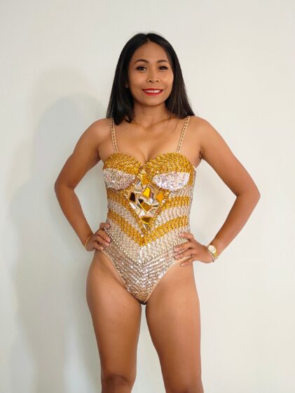 Lovely handmade Sequin / Beads / Crystal Design Bodysuit/Leotard.