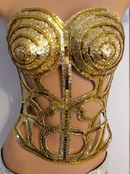 Lovely handmade GOLDEN MIRROR CORSET, with 100's of small mirror pieces !