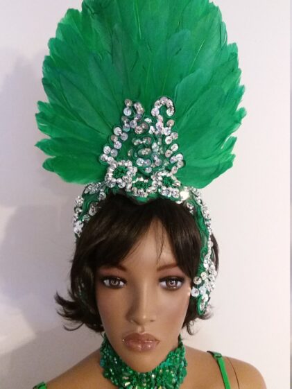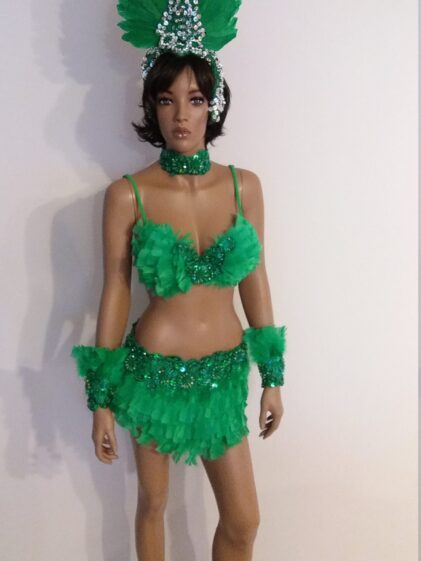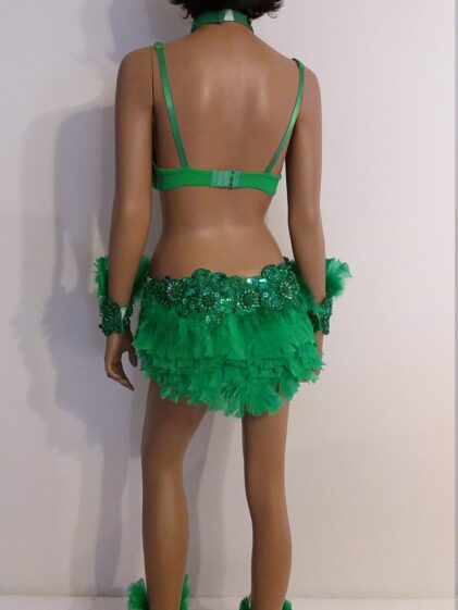 | GREEN Beads+Feather | Headpiece # 1, Feather Bikini Set 3, Arm+Leg Cuffs-4 pc. |