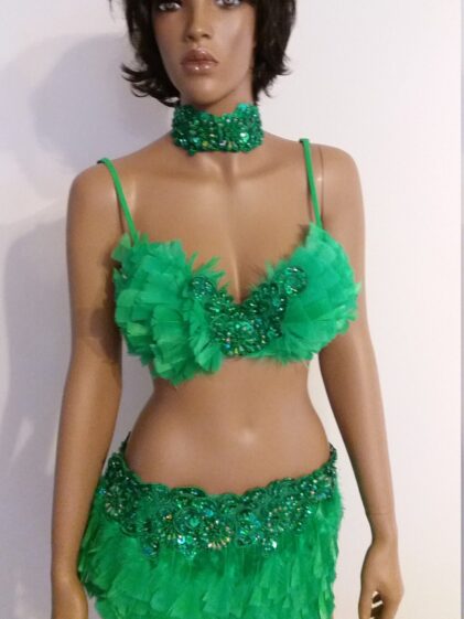 GREEN Beads with GREEN Feather BIKINI, includes the Feather Skirt, padded Bra + Choker ! 3-Piece Set !!! ( Please see all pictures ! )