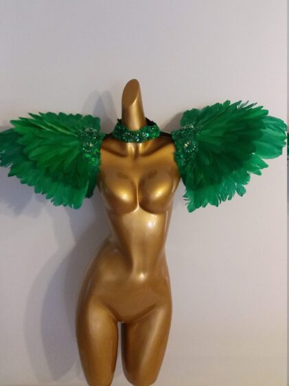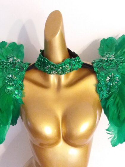 Large GREEN real Duck Feather Shoulder Pads, connected through beads collar ! ( Please see all pictures ! )