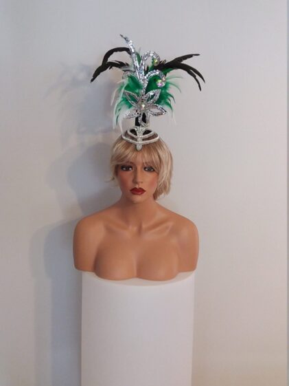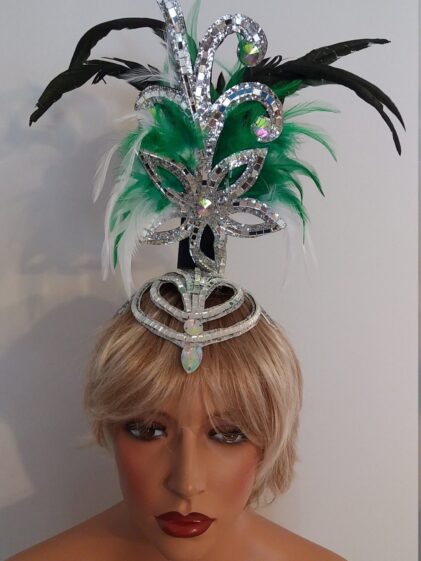 Silver base with GREEN feathers Headpiece ! ( Please see all pictures ! )