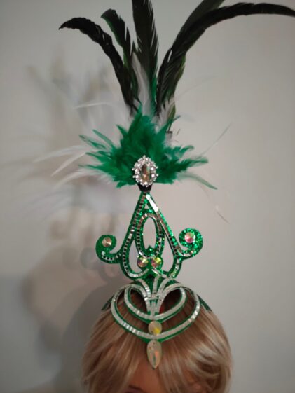 Silver base with GREEN feathers Headpiece ! ( Please see all pictures ! )